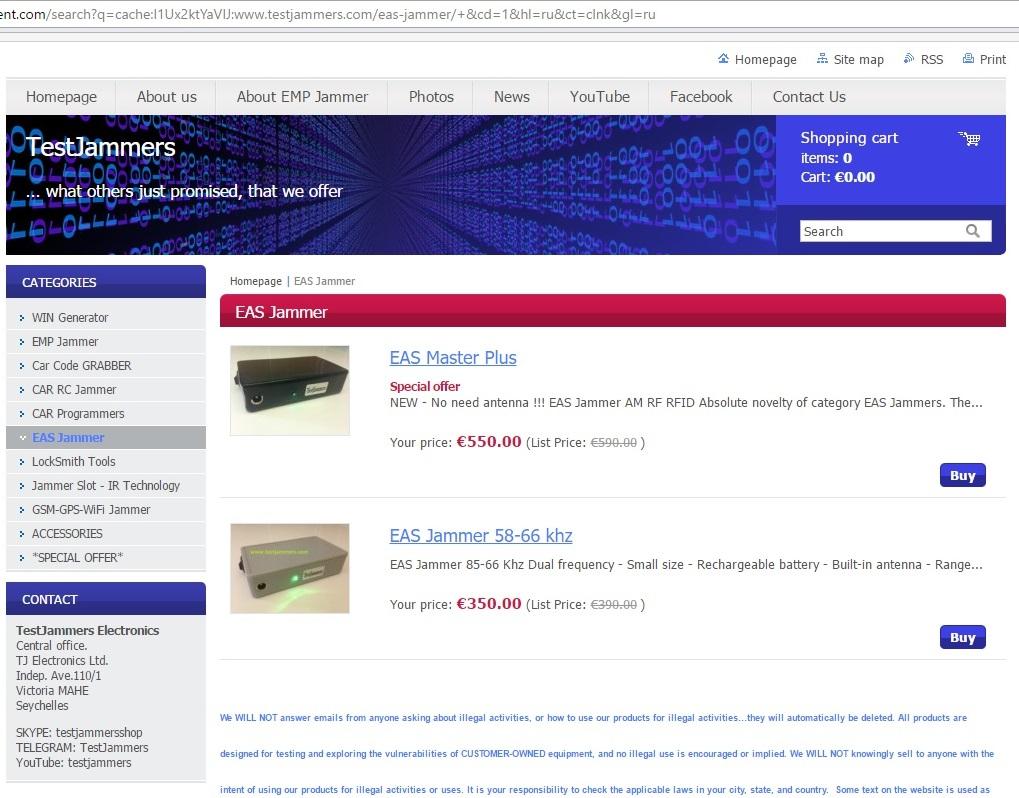 2020 წლის მარტში, ეს ბიზნესი დასრულდა პროგნოზირებადი ეგზიტ-სკამით: shoplifter001-მა აიღო 1000 ევრო კლიენტისგან და გაქრა. საიტმა Testjammers ევროპაში დაახლოებით იგივე გააკეთა: ყიდდა ჩინურ პატენტებს 180 დოლარად, სადაც პაწაწინა AM ანტენა გამოიმუშავებდა მიკრო-სიგნალს, ხოლო RF დიაპაზონი საერთოდ არ არსებობდა.